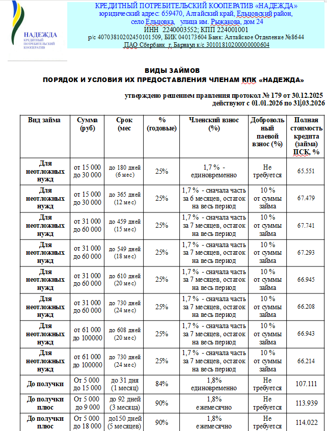 Внимание пайщиков - получателей финансовых услуг КПК "Надежда"