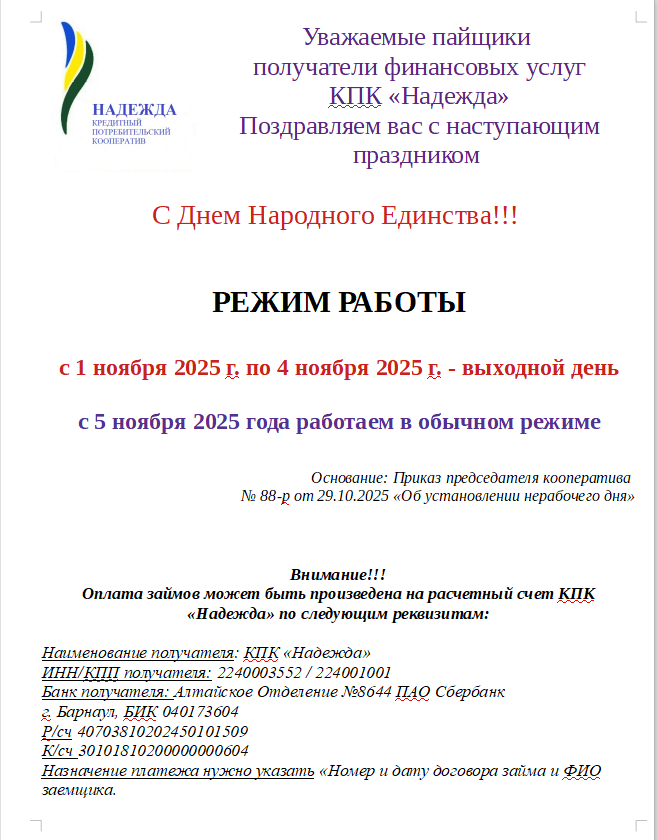 Кредитный потребительский кооператив «Надежда»